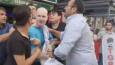 Members of the Turkish Youth Union (TGB) beat and put a bag over the head of an American soldier who was sent to the region to protect Israel and is said to be on duty aboard the USS Wasp aircraft carrier, which is now temporarily anchored in the Turkish port of Izmir.