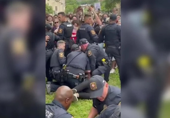 таҳсил олувчи бошқа талабалар полициядан ҳимоя қилиб турди (видео).