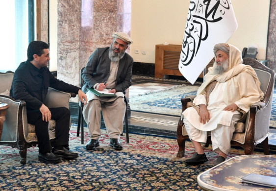 Бахтиёр Саидова Афғонистон бош вазири в. б. Мулла Муҳаммад Ҳасан Охунд билан