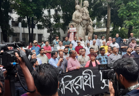 universitetining yuzlab oʻqituvchilari va teleyulduzlari payshanba kuni Dakkada oʻtgan