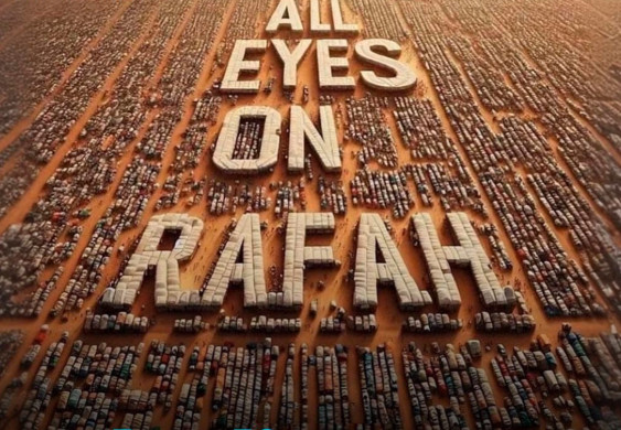 Soʻnggi bir necha oy ichida "Save the Children", «Oxfam», "Amerikaliklar Falastinda Adolat uchun", "Yahudiylarning tinchlik uchun ovozi" va "Falastin birdamlik kampaniyasi" kabi koʻplab tashkilotlar tomonidan Isroilning bosqiniga qarshi norozilik bildirish uchun "Barcha koʻz Rafahda" shiori ishlatilgan.